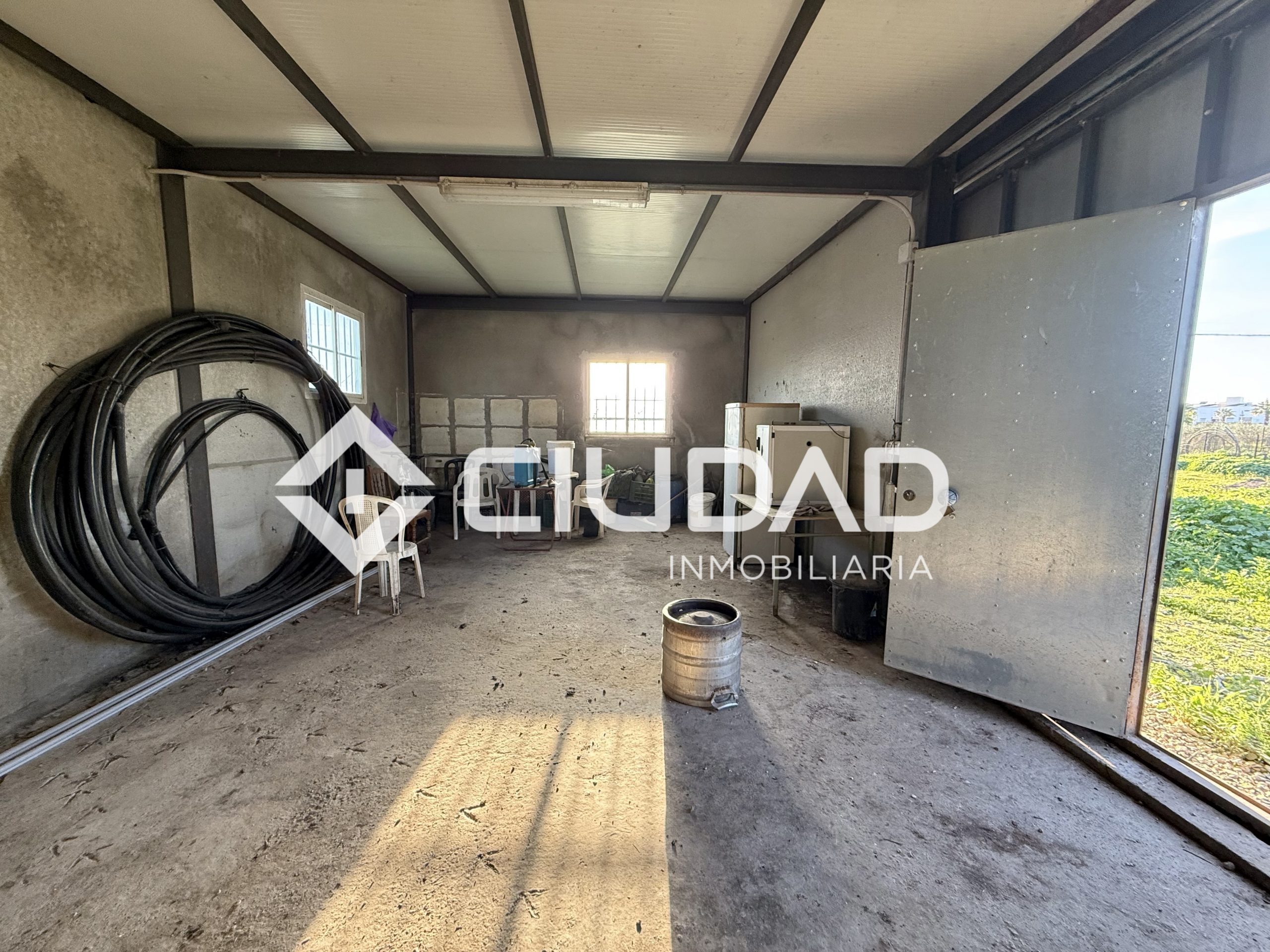 La finca se encuentra totalmente vallada, ofreciendo privacidad y seguridad. Dispone de pozo propio, luz mediante contador y una pequeña casa diáfana de chapa, ideal como zona de almacenamiento o espacio de recreo.