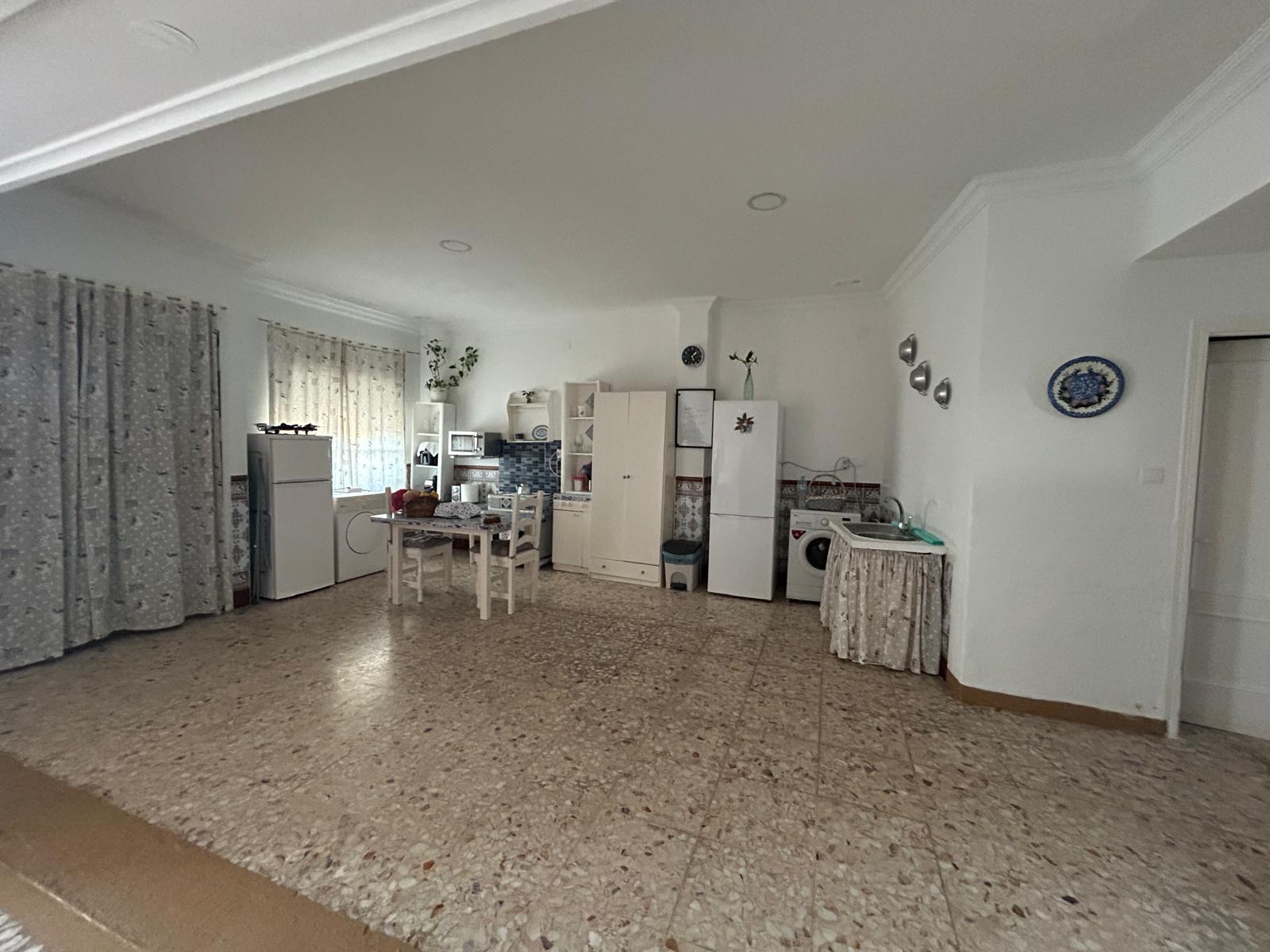 Maravillosa planta baja en Trajano. Consta de 291m2, divididos entre salón-comedor muy amplio con cocina, aseo con placa de ducha, 2 habitaciones, salón y patio.