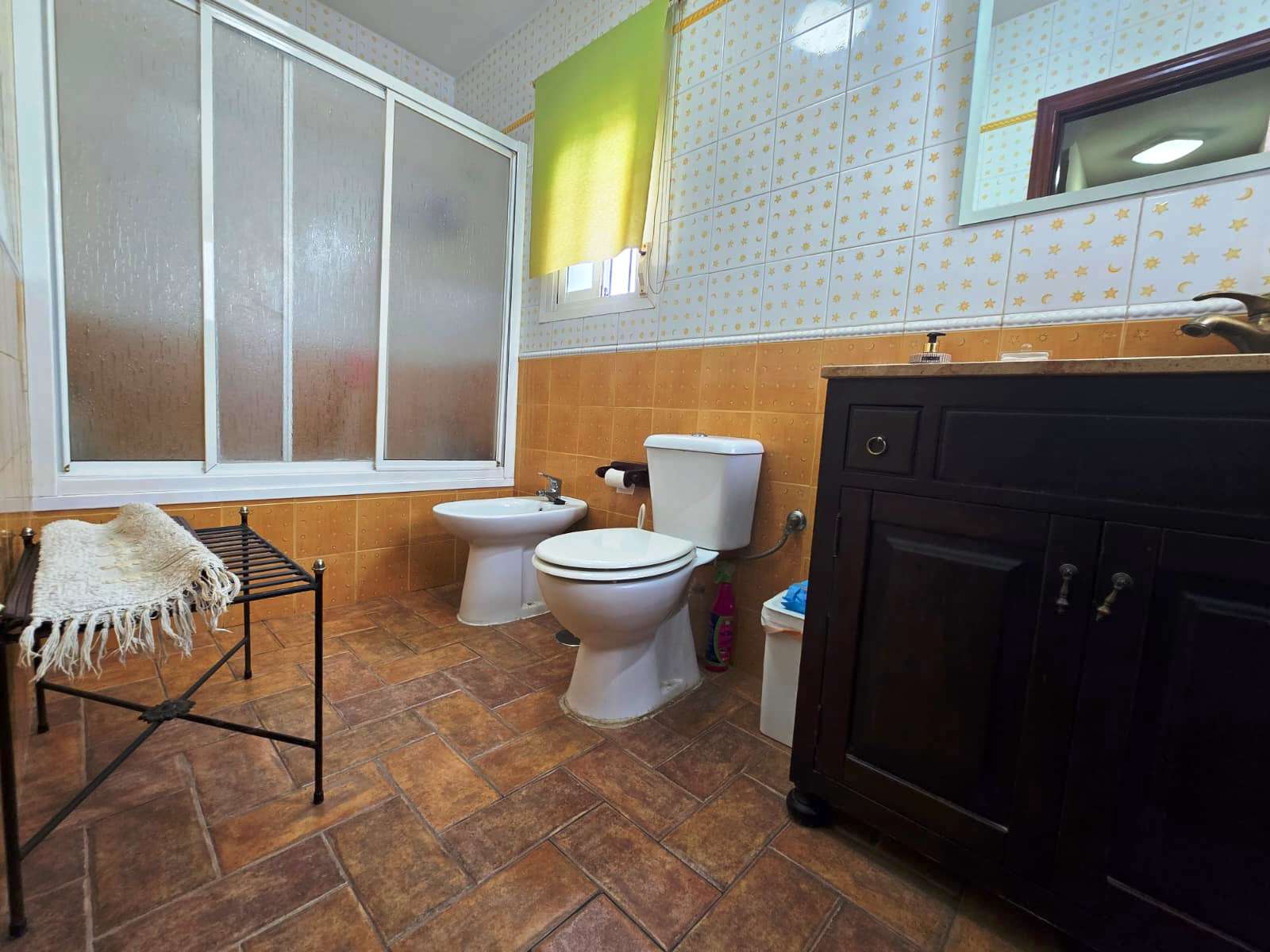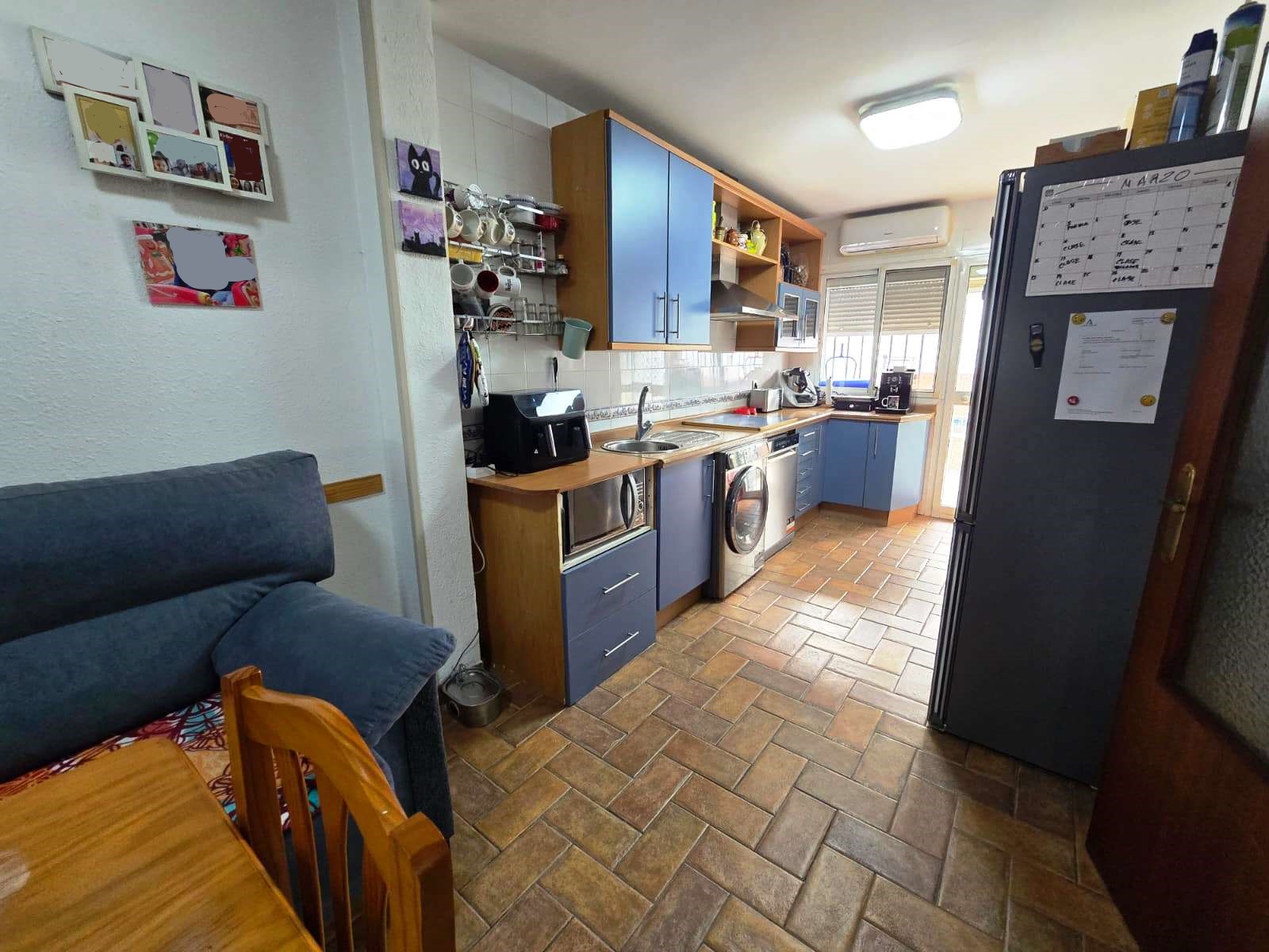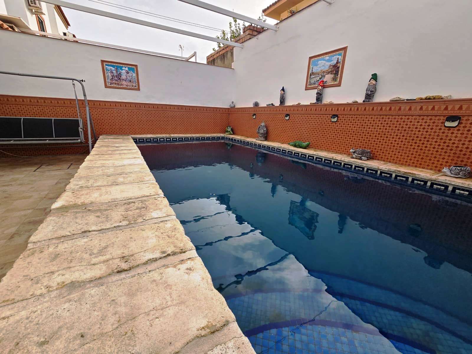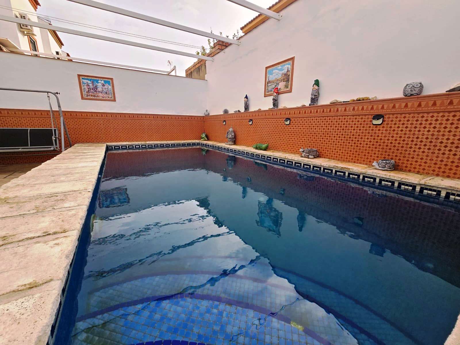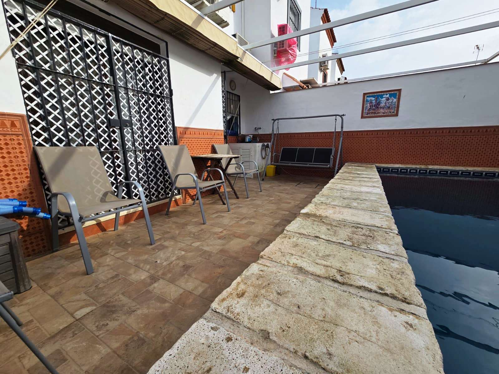 Casa adosada situada en Bollullos de la Mitación, cercana al instituto Alminar, viveros, restauración, parques, supermercado, gasolinera. La vivienda de 126 m2 construidos y 133 m2 de parcela consta de 3 plantas. En planta baja tiene porche delantero de 33 m2 con plaza de garaje, salón-comedor, cocina amueblada con sala de estar con posibilidad de hacerla habitación, 1 baño completo y patio trasero de 44 m2 con piscina privada con depuradora de cristal. En primera planta tiene 3 habitaciones con armario empotrados y 2 baños completos (uno en suite). En segunda planta tiene terraza y 2 estancias, de la cual, una es habitación. Dispone de batería de almacenamiento de energía solar, placas solares y máquinas de aire acondicionado de Split en todas las estancias. Año 2002. Ponemos a su disposición un asesor inmobiliario y financiero para informarle sobre los gastos de compra-venta y de financiación que no están incluidos en el precio de venta. Nos encargaremos de todos los trámites necesarios para que pueda comprar su vivienda de la manera más cómoda posible. Venga a Ciudad Inmobiliaria de Bormujos y acertará.