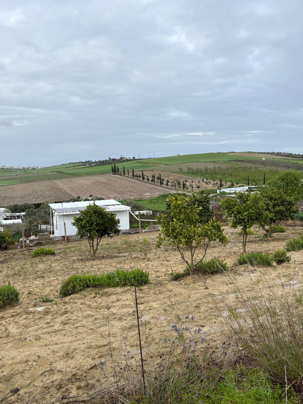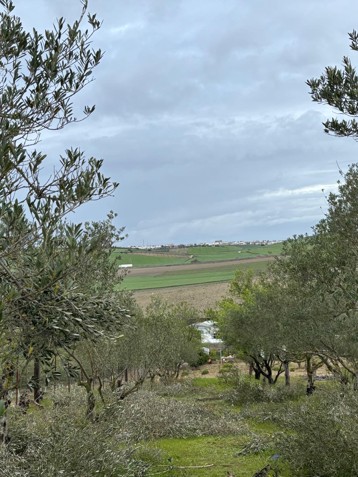 Finca de 2.600 m² con olivos, naranjos y limoneros, situada cerca de Lebrija y El Cuervo, en un entorno tranquilo y natural.